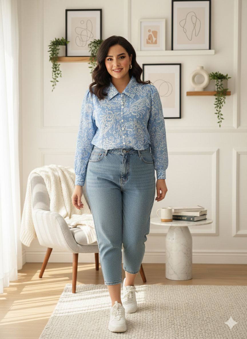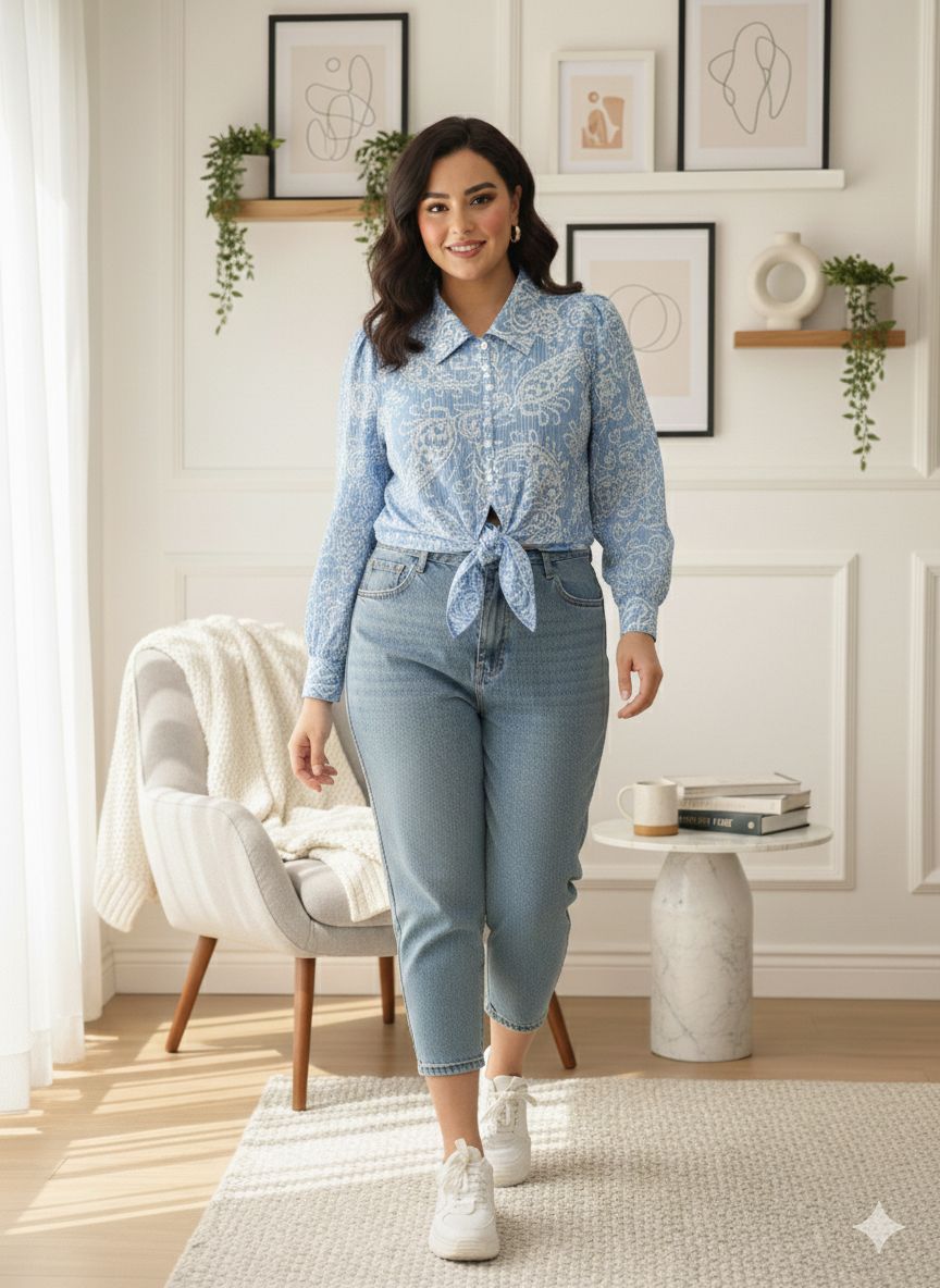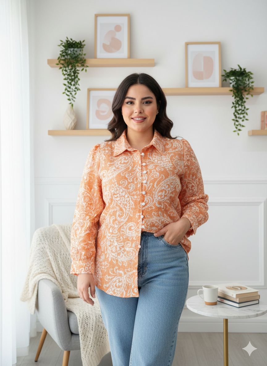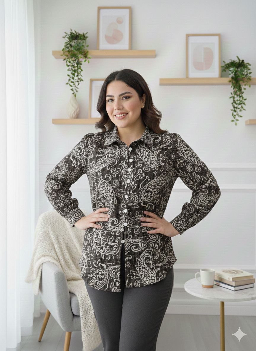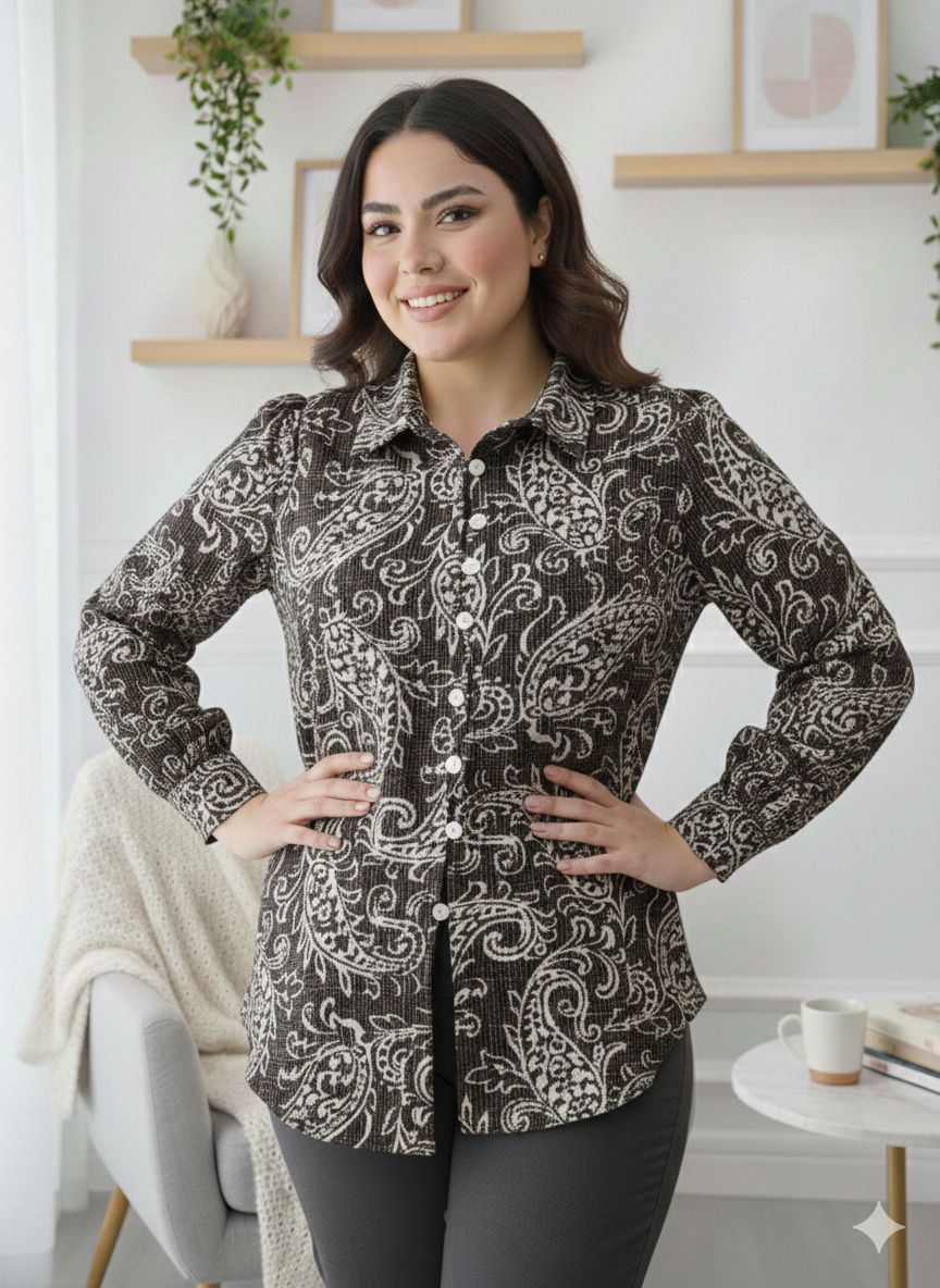 🌸 شومیز گلدار نخی فریسایز 🌸