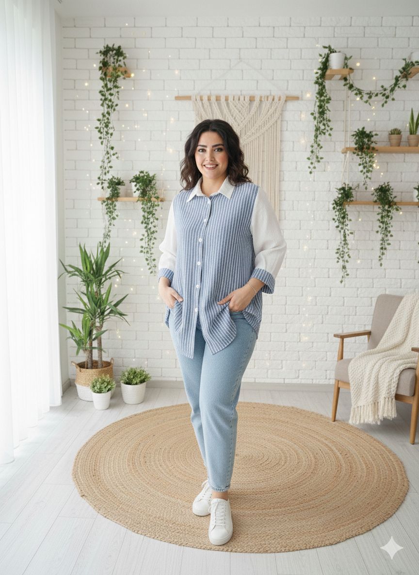 🌸شومیز نخی بیگسایز با فیت آزاد و دلنشین